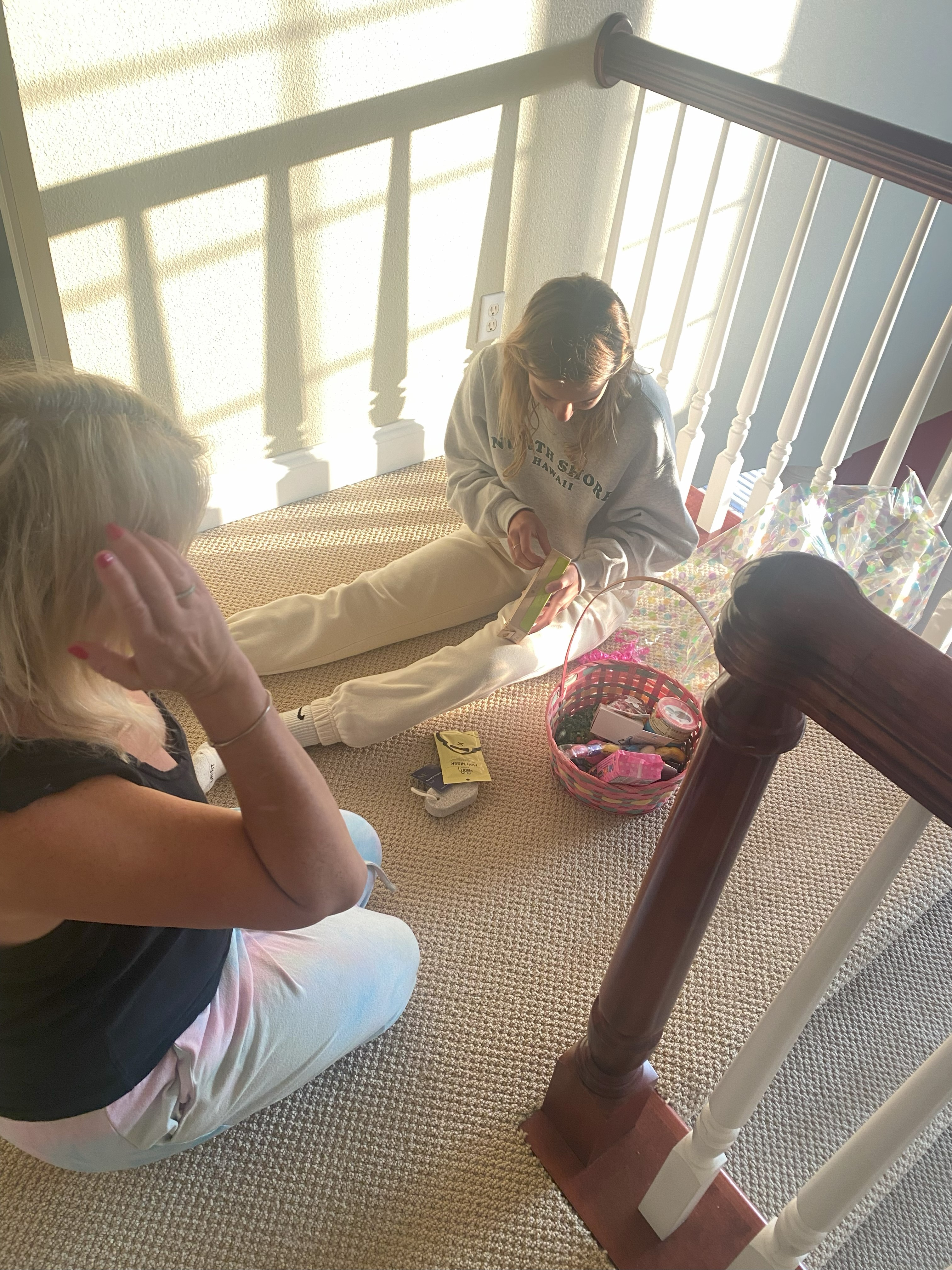What I ended up doing was creating an Easter basket for my high school daughter. Hey, she’s the only kid at home so she should have special benefits, don’t you think? ( In her Easter basket, I put a brand new soccer ball along with some candy and a Starbucks gift card) I put together an Easter care package for my college son in Virginia (a simple box filled with Easter grass, candy, a Starbucks and a Door Dash gift card and an Easter greeting card made from a family pic for his apartment!) and well my married daughter and son-in-law, they get a “Happy Easter” phone call from their dear sweet Mom! Lol! ๐