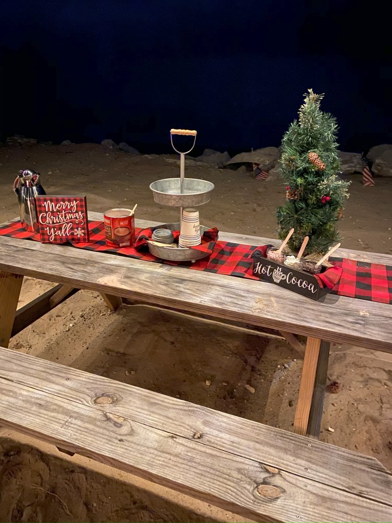 Gather some chairs and a picnic table or two around your bonfire and you’re almost ready to get festive!